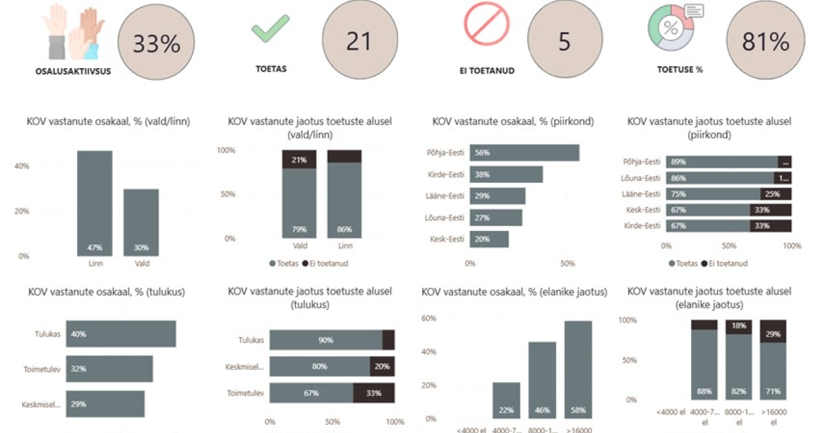 Omavalitsuste vaates saab iga omavalitsus näha oma isiklikku statistikat: kui aktiivselt on osaletud eelnõude menetlemisel ja milliseid hinnanguid (toetus või mittetoetus) on antud.